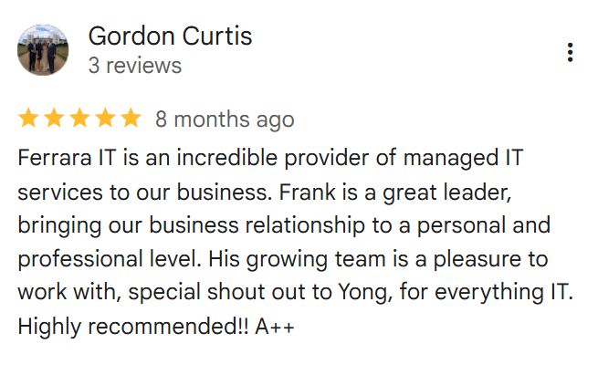 Their team is organized, efficient, and easy to work with. Ferrara IT is the strategic partner we’d been looking for and remains one of our most trusted providers. Highly recommend!